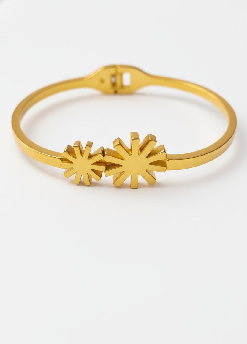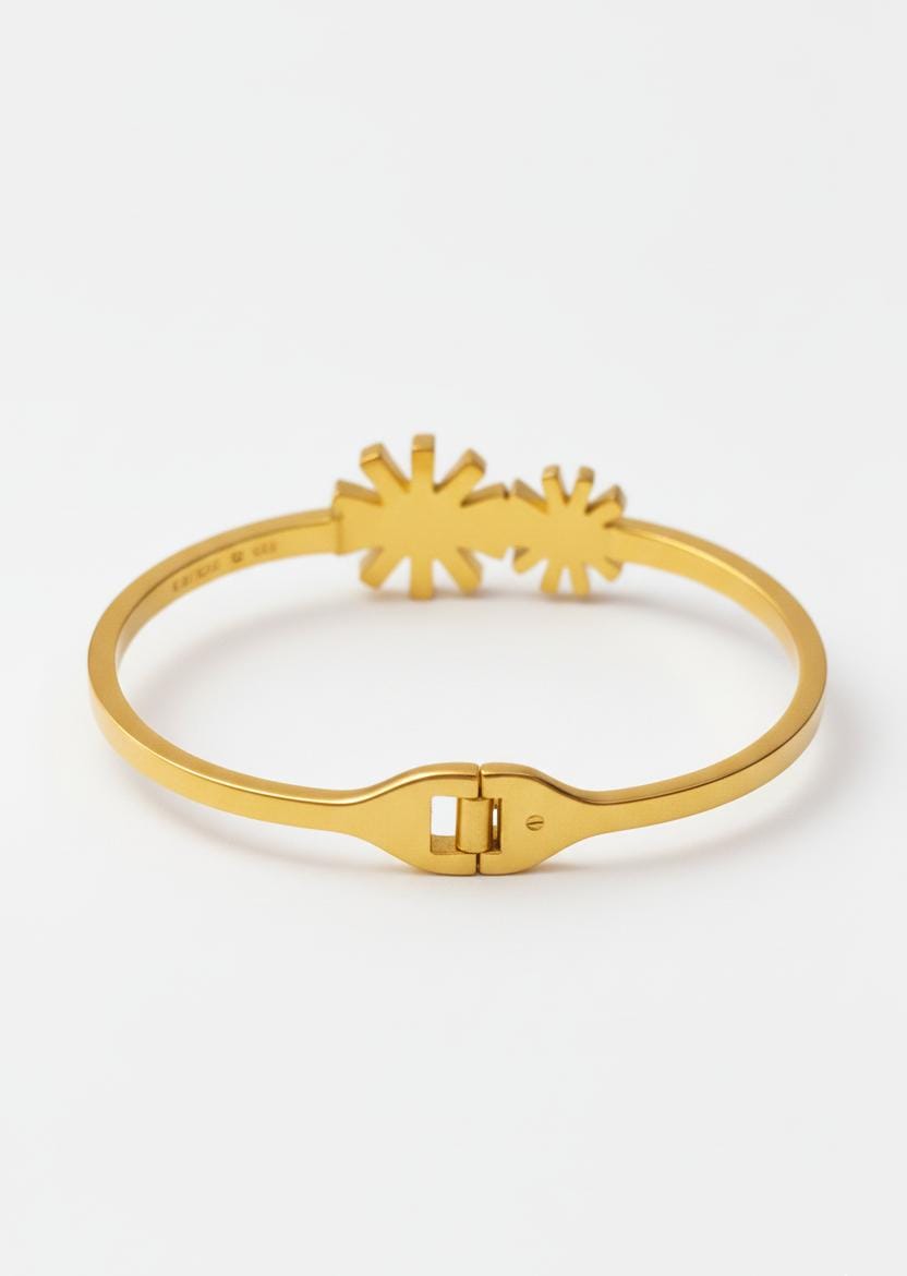 𝐂𝐞𝐥𝐞𝐬𝐭𝐢𝐚 𝐓𝐰𝐢𝐧-𝐒𝐭𝐚𝐫 𝐁𝐚𝐧𝐠𝐥𝐞 𝐀𝐝𝐝 𝐚 𝐭𝐨𝐮𝐜𝐡 𝐨𝐟 𝐭𝐢𝐦𝐞𝐥𝐞𝐬𝐬 𝐞𝐥𝐞𝐠𝐚𝐧𝐜𝐞 𝐭𝐨 𝐲𝐨𝐮𝐫 𝐬𝐭𝐲𝐥𝐞 𝐰𝐢𝐭𝐡 𝐭𝐡𝐞 𝐂𝐞𝐥𝐞𝐬𝐭𝐢𝐚 𝐓𝐰𝐢𝐧-𝐒𝐭𝐚𝐫 𝐁𝐚𝐧𝐠𝐥𝐞. 𝐃𝐞𝐬𝐢𝐠𝐧𝐞𝐝 𝐰𝐢𝐭𝐡 𝐚 𝐬𝐥𝐞𝐞𝐤 𝐝𝐮𝐚𝐥-𝐬𝐭𝐚𝐫 𝐦𝐨𝐭𝐢𝐟, 𝐭𝐡𝐢𝐬 𝐛𝐚𝐧𝐠𝐥𝐞 𝐫𝐞𝐩𝐫𝐞𝐬𝐞𝐧𝐭𝐬 𝐫𝐚𝐝𝐢𝐚𝐧𝐜𝐞, 𝐛𝐚𝐥𝐚𝐧𝐜𝐞, 𝐚𝐧𝐝 𝐦𝐨𝐝𝐞𝐫𝐧 𝐟𝐞𝐦𝐢𝐧𝐢𝐧𝐢𝐭𝐲. 𝐂𝐫𝐚𝐟𝐭𝐞𝐝 𝐟𝐫𝐨𝐦 𝐩𝐫𝐞𝐦𝐢𝐮𝐦 𝐬𝐭𝐚𝐢𝐧𝐥𝐞𝐬𝐬 𝐬𝐭𝐞𝐞𝐥, 𝐢𝐭 𝐨𝐟𝐟𝐞𝐫𝐬 𝐬𝐮𝐩𝐞𝐫𝐢𝐨𝐫 𝐝𝐮𝐫𝐚𝐛𝐢𝐥𝐢𝐭𝐲 𝐰𝐢𝐭𝐡 𝐚 𝐥𝐮𝐱𝐮𝐫𝐢𝐨𝐮𝐬 𝐠𝐨𝐥𝐝 𝐟𝐢𝐧𝐢𝐬𝐡. 𝐓𝐡𝐞 𝐚𝐧𝐭𝐢-𝐭𝐚𝐫𝐧𝐢𝐬𝐡 𝐜𝐨𝐚𝐭𝐢𝐧𝐠 𝐞𝐧𝐬𝐮𝐫𝐞𝐬 𝐥𝐨𝐧𝐠-𝐥𝐚𝐬𝐭𝐢𝐧𝐠 𝐬𝐡𝐢𝐧𝐞, 𝐰𝐡𝐢𝐥𝐞 𝐢𝐭𝐬 𝐰𝐚𝐭𝐞𝐫𝐩𝐫𝐨𝐨𝐟 𝐚𝐧𝐝 𝐬𝐤𝐢𝐧-𝐟𝐫𝐢𝐞𝐧𝐝𝐥𝐲 𝐛𝐮𝐢𝐥𝐝 𝐦𝐚𝐤𝐞𝐬 𝐢𝐭 𝐢𝐝𝐞𝐚𝐥 𝐟𝐨𝐫 𝐞𝐯𝐞𝐫𝐲𝐝𝐚𝐲 𝐰𝐞𝐚𝐫. 𝐋𝐢𝐠𝐡𝐭𝐰𝐞𝐢𝐠𝐡𝐭 𝐲𝐞𝐭 𝐬𝐭𝐫𝐢𝐤𝐢𝐧𝐠, 𝐭𝐡𝐢𝐬 𝐛𝐚𝐧𝐠𝐥𝐞 𝐜𝐨𝐦𝐩𝐥𝐞𝐦𝐞𝐧𝐭𝐬 𝐛𝐨𝐭𝐡 𝐜𝐚𝐬𝐮𝐚𝐥 𝐚𝐧𝐝 𝐩𝐚𝐫𝐭𝐲 𝐥𝐨𝐨𝐤𝐬 𝐞𝐟𝐟𝐨𝐫𝐭𝐥𝐞𝐬𝐬𝐥𝐲. 𝐀 𝐩𝐞𝐫𝐟𝐞𝐜𝐭 𝐛𝐥𝐞𝐧𝐝 𝐨𝐟 𝐦𝐢𝐧𝐢𝐦𝐚𝐥 𝐝𝐞𝐬𝐢𝐠𝐧 𝐚𝐧𝐝 𝐩𝐫𝐞𝐦𝐢𝐮𝐦 𝐜𝐫𝐚𝐟𝐭𝐬𝐦𝐚𝐧𝐬𝐡𝐢𝐩, 𝐭𝐡𝐞 𝐂𝐞𝐥𝐞𝐬𝐭𝐢𝐚 𝐓𝐰𝐢𝐧-𝐒𝐭𝐚𝐫 𝐁𝐚𝐧𝐠𝐥𝐞 𝐢𝐬 𝐚 𝐦𝐮𝐬𝐭-𝐡𝐚𝐯𝐞 𝐚𝐝𝐝𝐢𝐭𝐢𝐨𝐧 𝐭𝐨 𝐚𝐧𝐲 𝐦𝐨𝐝𝐞𝐫𝐧 𝐣𝐞𝐰𝐞𝐥𝐥𝐞𝐫𝐲 𝐜𝐨𝐥𝐥𝐞𝐜𝐭𝐢𝐨𝐧.